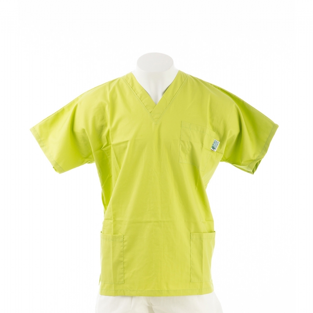 Buy SKU381S - Chartreuse Short Sleeve Scrub Top with Side Pockets 100% Cotton online from us for just £25.00 (£30.00 inc VAT), contact us for bulk and wholesale orders.