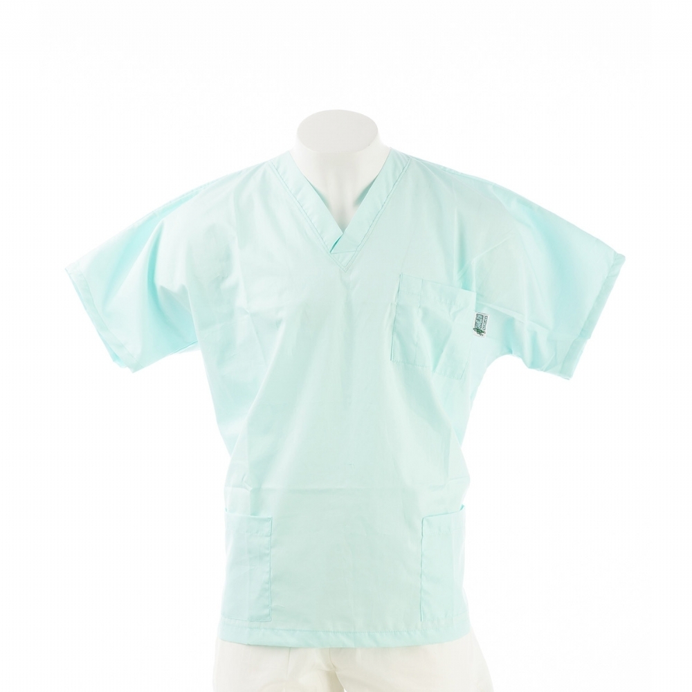 Buy SKU54-S - Mint Short Sleeve Scrub Top with Side Pockets 100% Cotton online from us for just £25.00 (£30.00 inc VAT), contact us for bulk and wholesale orders.