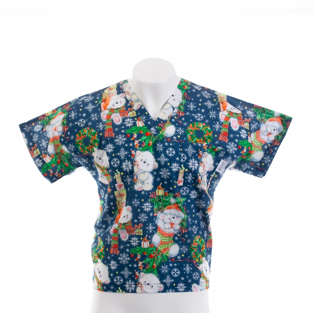 Buy SKU310PS - Teddy In The Christmas Stocking Short Sleeve Scrub Top 100% Cotton online from us for just £25.00 (£30.00 inc VAT), contact us for bulk and wholesale orders.