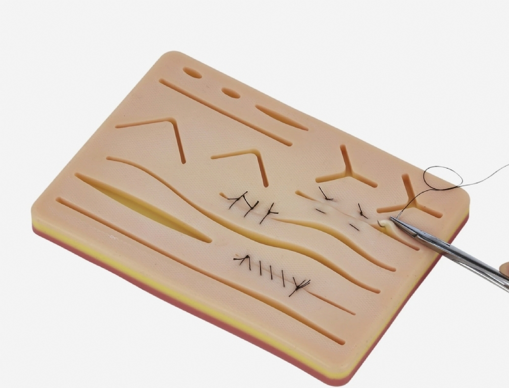 Designed for use with standard surgical sutures, the training pad allows users to practise a wide range of wound closure techniques including interrupted sutures, continuous sutures, mattress sutures and cosmetic skin closure methods.