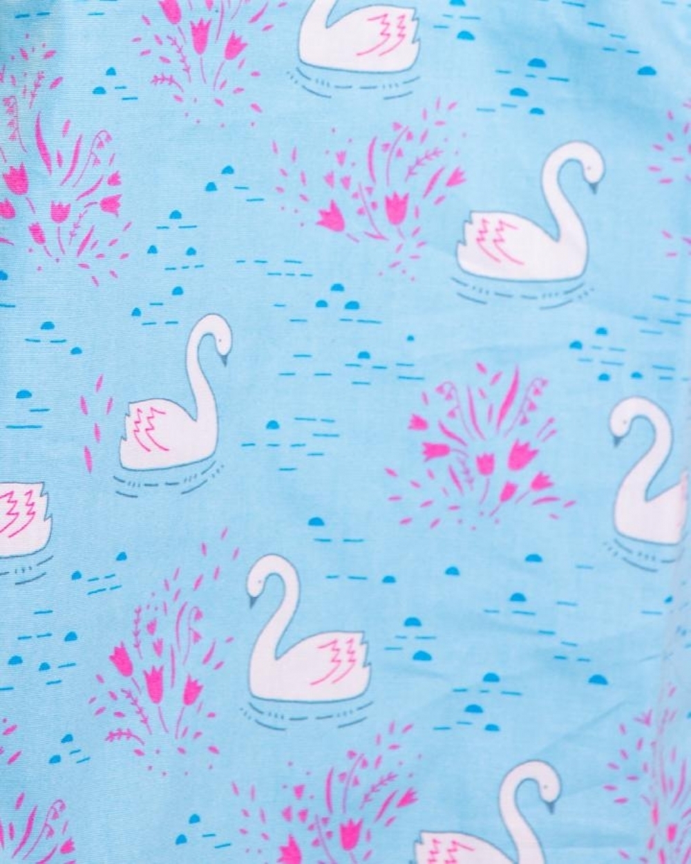 Blue majestic swan patterned short sleeve medical scrub top made from 100% cotton, offering breathable comfort, durability and elegant style for healthcare professionals working long shifts in clinical environments.