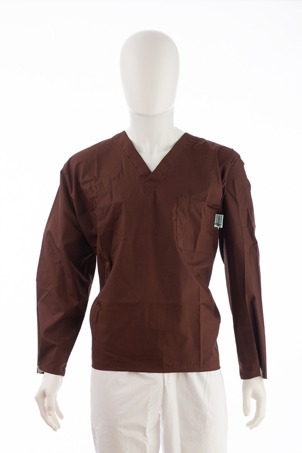 Buy SKU383V - Brown Long Sleeve Scrub Top Velcro Cuff 100% Cotton online from us for just £29.00 (£34.80 inc VAT), contact us for bulk and wholesale orders.