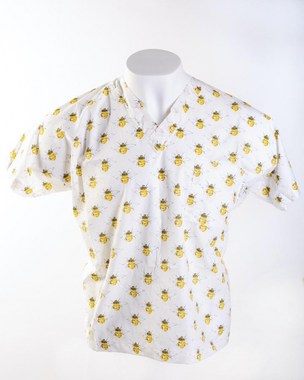 A practical chest pocket offers convenient storage for small essentials or technology, while the Bumble Bee Ivory print helps create a calm and welcoming environment for patients, particularly in paediatric, dental and care settings.