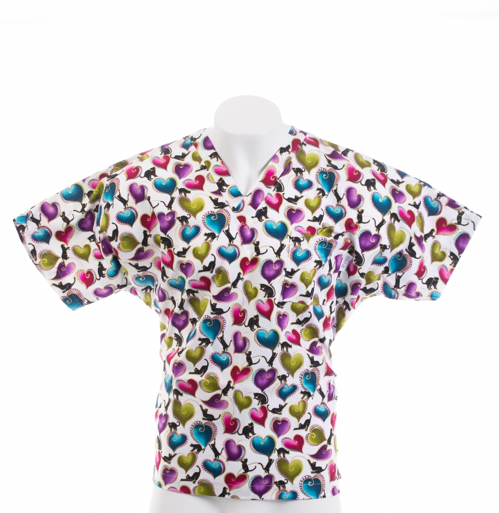 Buy SKU281PS - Cats Love Hearts Short Sleeve Scrub Top 100% Cotton online from us for just £25.00 (£30.00 inc VAT), contact us for bulk and wholesale orders.