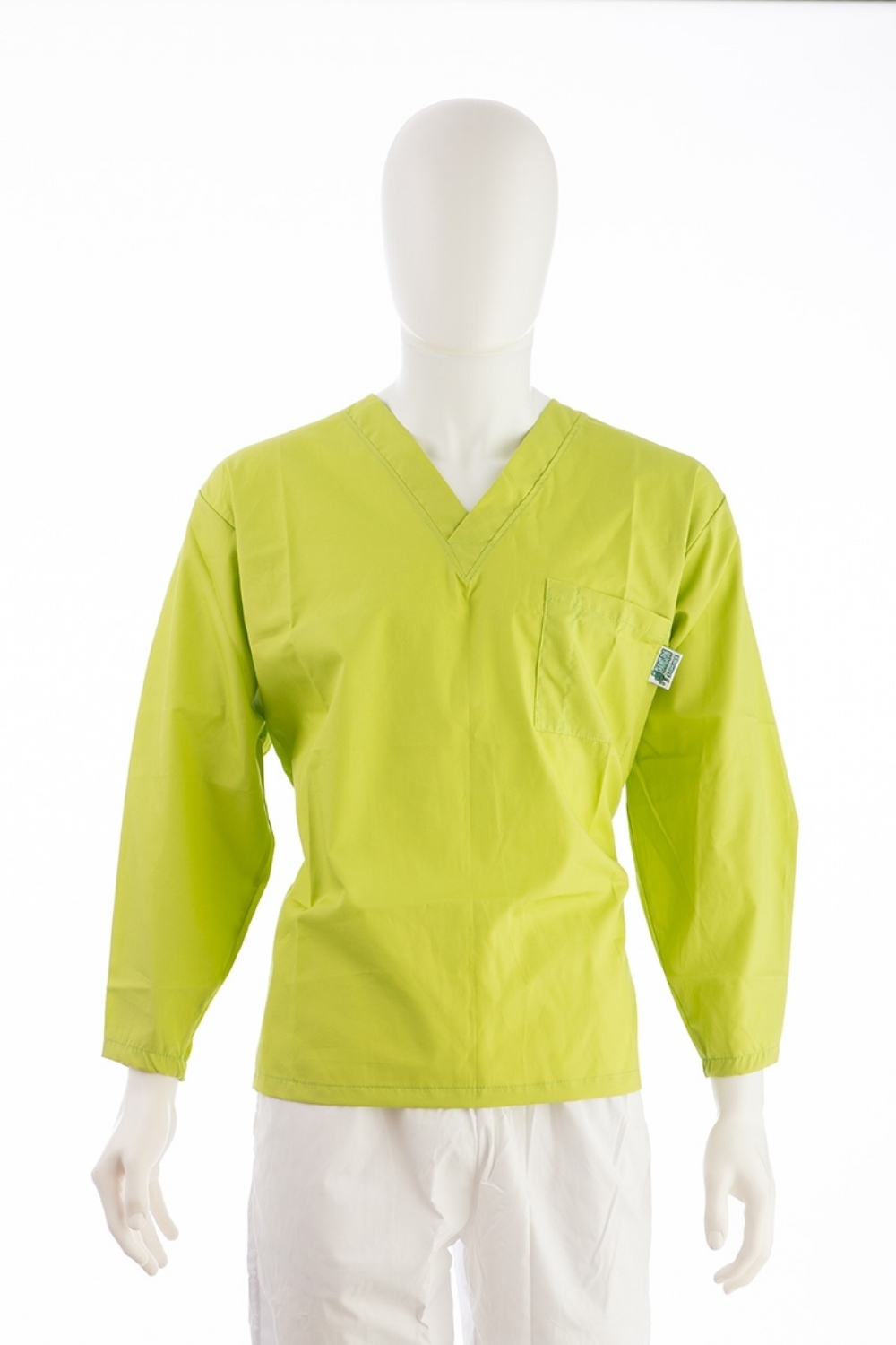 Buy SKU381V - Chartreuse Long Sleeve Scrub Top Velcro Cuff 100% Cotton online from us for just £29.00 (£34.80 inc VAT), contact us for bulk and wholesale orders.