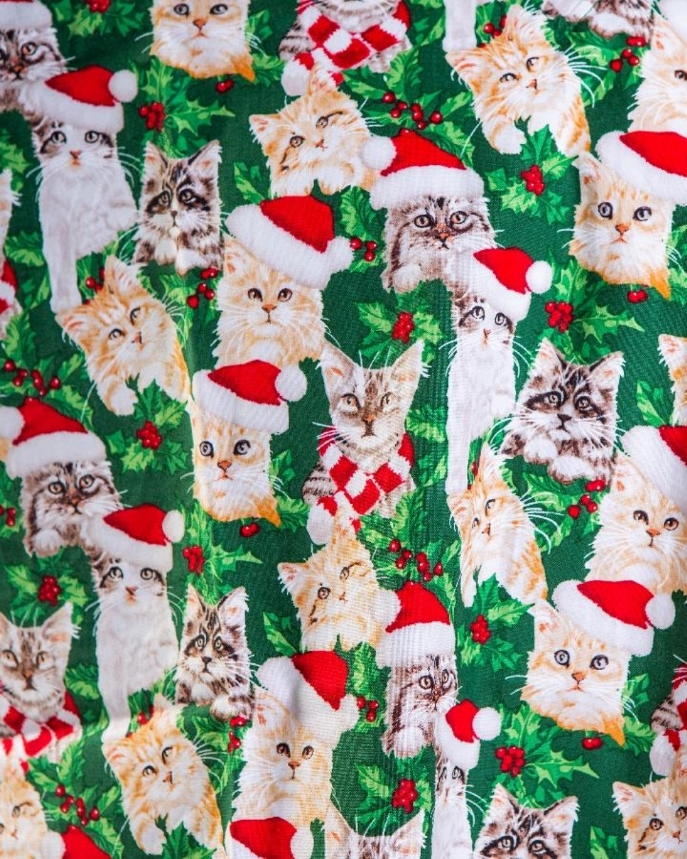 Christmas Cats short sleeve medical scrub top made from 100% cotton, offering breathable comfort, durability and a festive professional appearance for healthcare staff working shifts in clinical environments UK.