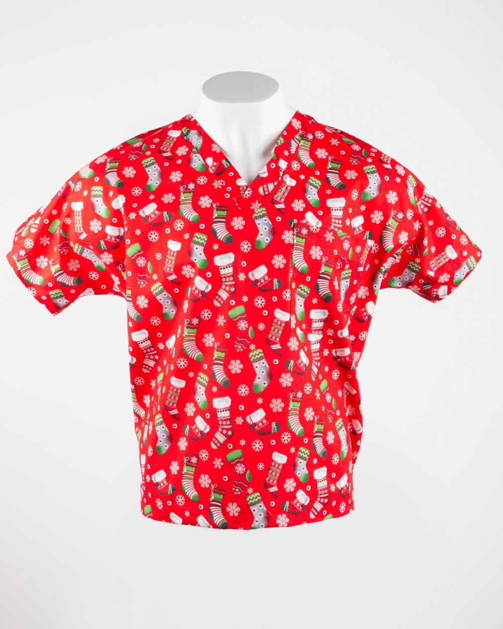 Buy SKU39 - Christmas Stocking Short Sleeve Scrub Top 100% Cotton online from us for just £25.00 (£30.00 inc VAT), contact us for bulk and wholesale orders.