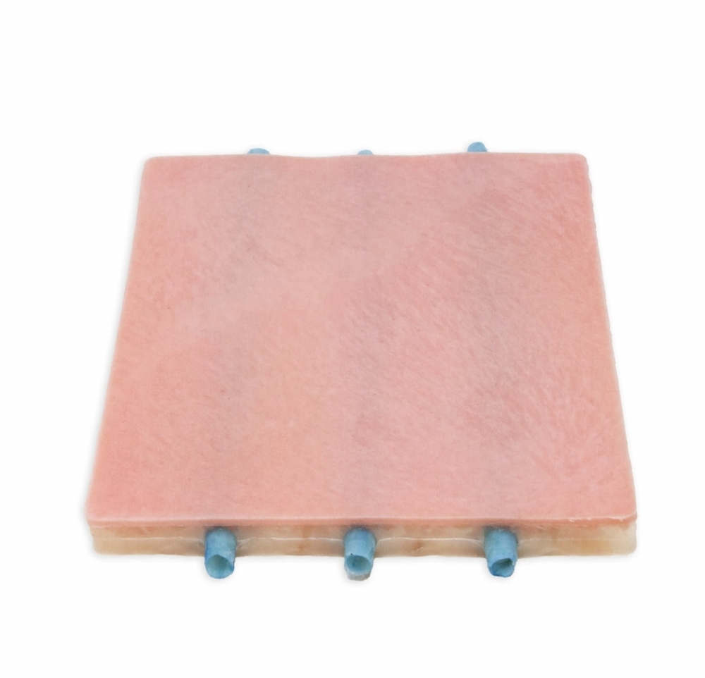 This model features multiple veins embedded within soft tissue beneath a dermis layer, allowing users to practise locating and puncturing veins under realistic anatomical conditions. The model replicates the feel of human tissue, helping trainees improve needle control, positioning and insertion technique.