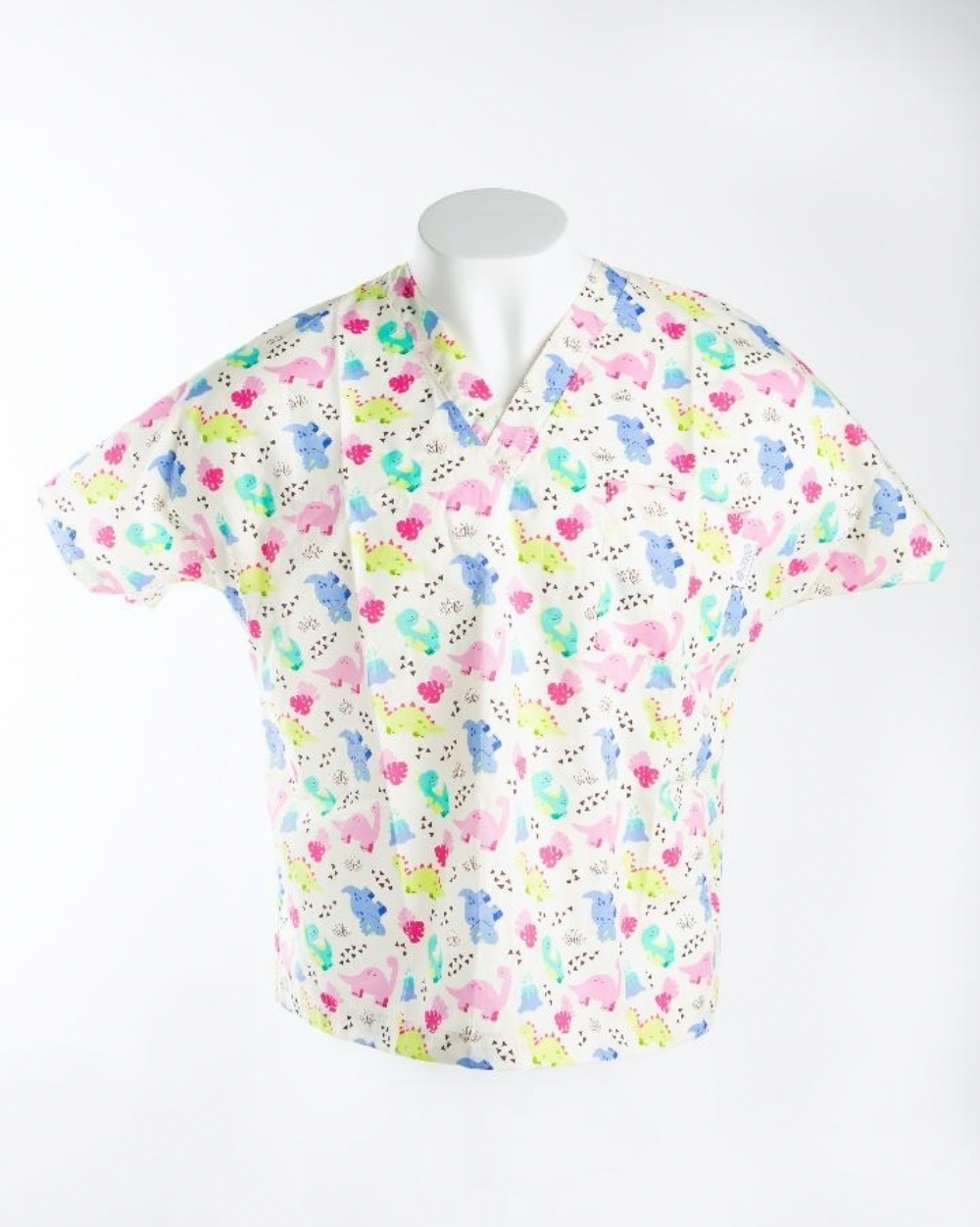 Buy SKU273PS - Ivory Baby Dinosaur Short Sleeve Scrub Top 100% Cotton online from us for just £25.00 (£30.00 inc VAT), contact us for bulk and wholesale orders.