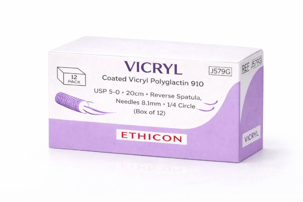Buy J579G - J579G Ethicon Coated Vicryl Polyglactin 910 Braided Medical Sutures USP 5 0 – 20cm – 1 4 Circle Reverse Spatula Needles 8.1mm Double Armed (Box of 12) online from us for just £232.19 (£278.63 inc VAT), contact us for bulk and wholesale orders.