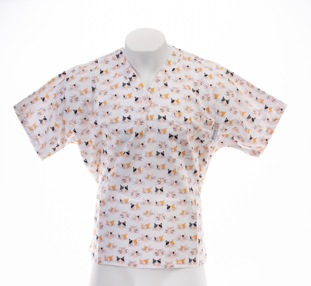 Buy SKU349PS - Kitty Cat White Short Sleeve Scrub Top 100% Cotton online from us for just £25.00 (£30.00 inc VAT), contact us for bulk and wholesale orders.