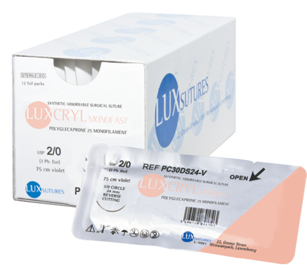 Indications Luxcryl Monofast sutures are intended for use in superficial soft tissue closing and/or ligation; especially in general surgery, skin closure, plastic surgery, gastrointestinal surgery, gynaecology, urology.