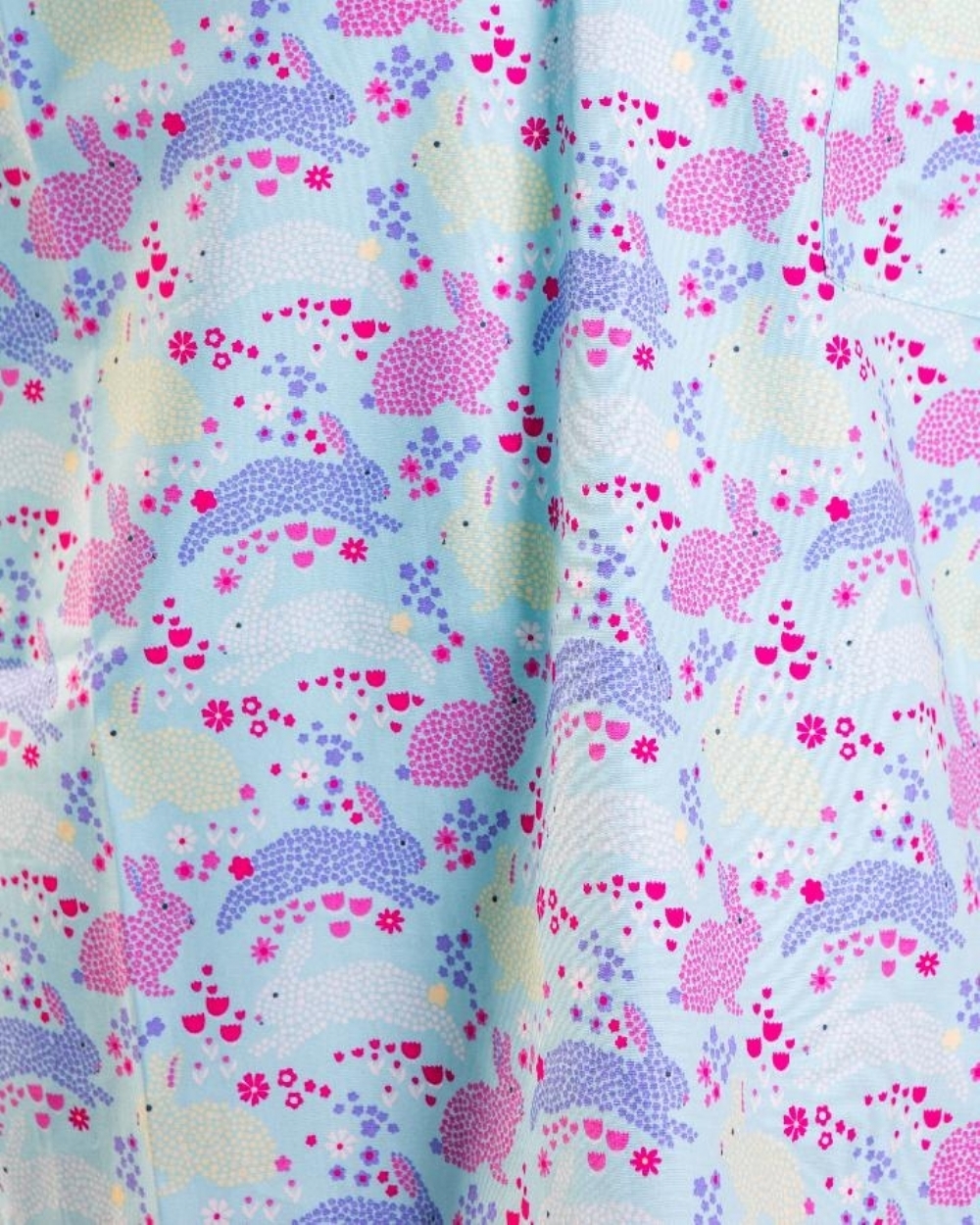 Multicoloured rabbits patterned short sleeve medical scrub top made from 100% cotton, offering breathable comfort, durability and cheerful style for healthcare professionals working long shifts in clinical environments UK.