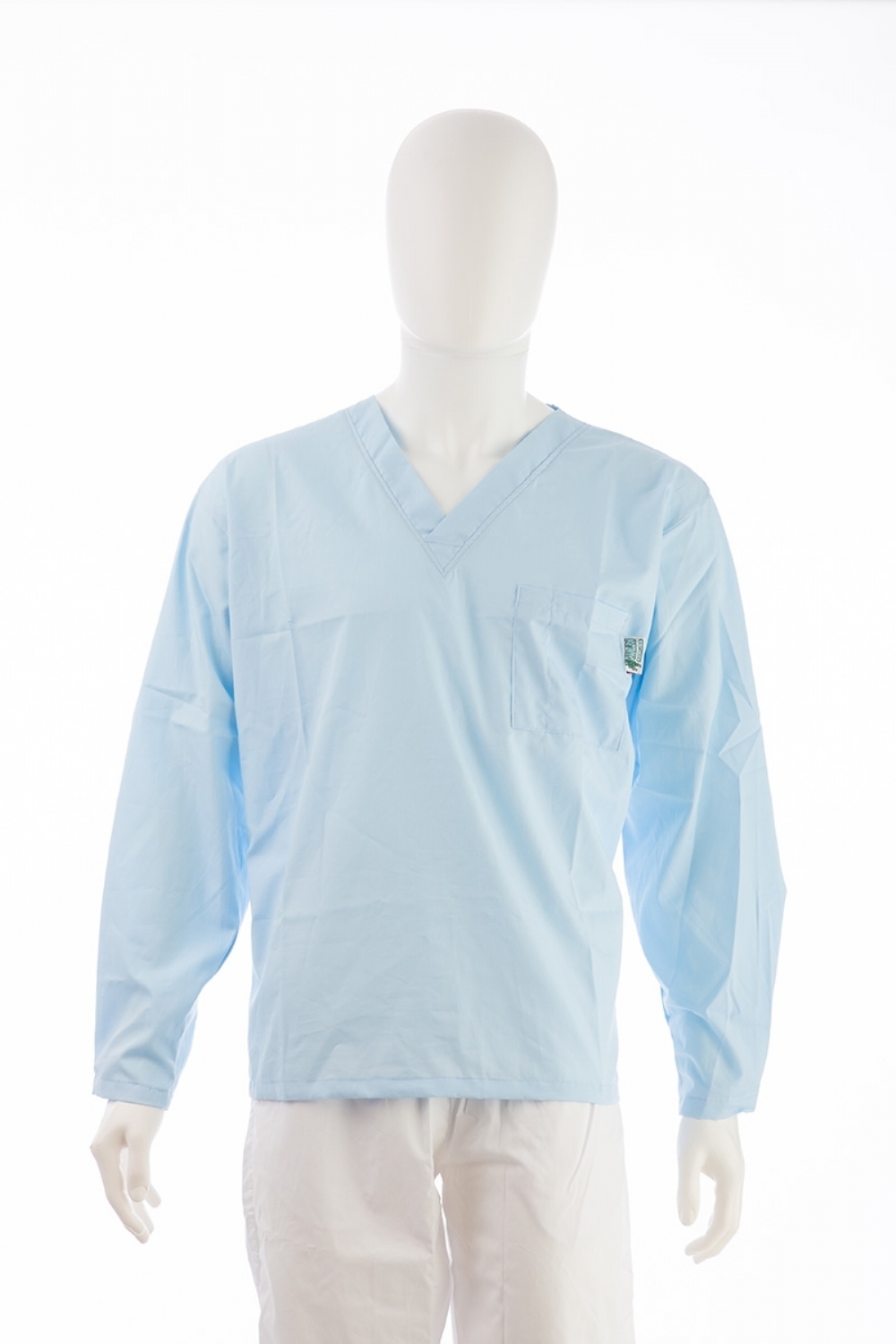 Buy SKU387V - Pale Blue Long Sleeve Scrub Top Velcro Cuff 100% Cotton online from us for just £29.00 (£34.80 inc VAT), contact us for bulk and wholesale orders.