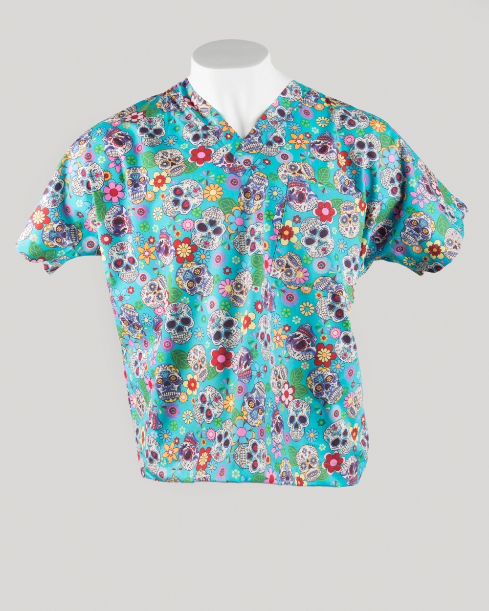 Buy SKU40PS - Turquoise Halloween Short Sleeve Scrub Top 100% Cotton online from us for just £25.00 (£30.00 inc VAT), contact us for bulk and wholesale orders.