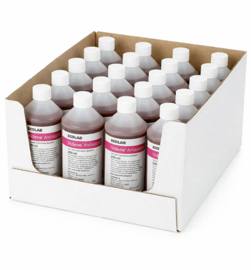 Videne Antiseptic Solution 200ml is a powerful antimicrobial skin disinfectant designed for infection control and antiseptic skin preparation in healthcare environments.